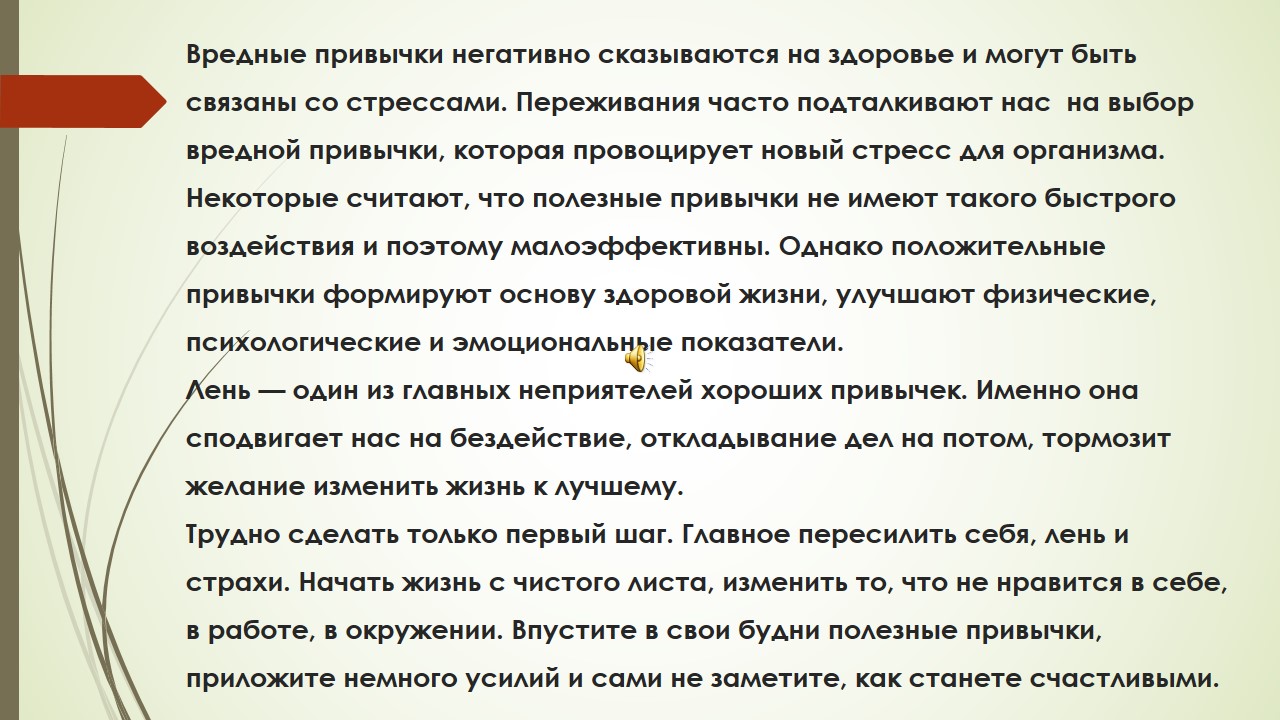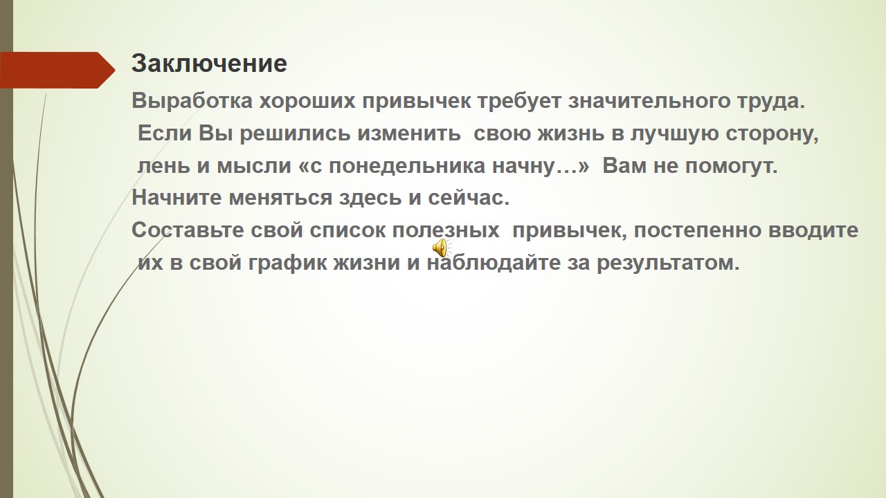 Жақсы әдеттерді дамыту айтарлықтай еңбекті қажет етеді. Егер сіз өміріңізді жақсартуға шешім қабылдасаңыз, жалқаулық пен «дүйсенбіден бастаймын...» ойлары сізге көмектеспейді. Мұнда және қазір өзгере бастаңыз. Жақсы әдеттердің тізімін жасаңыз, оларды біртіндеп өмір кестеңізге енгізіп, нәтижесін бақылаңыз.