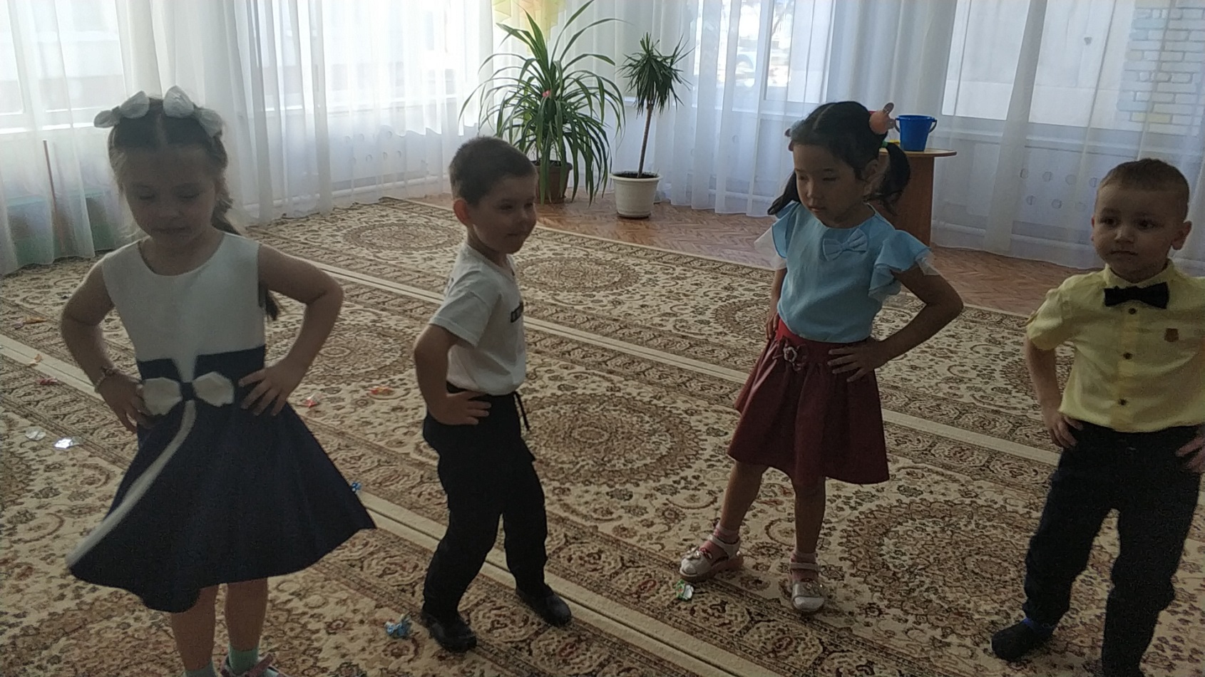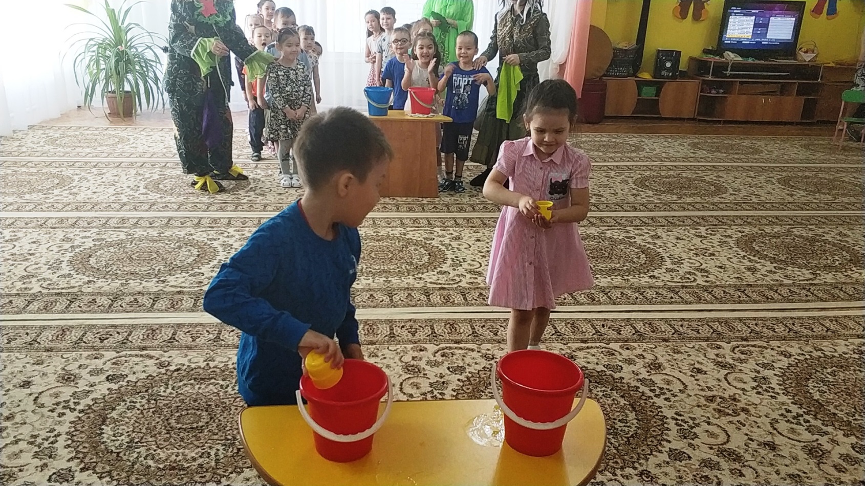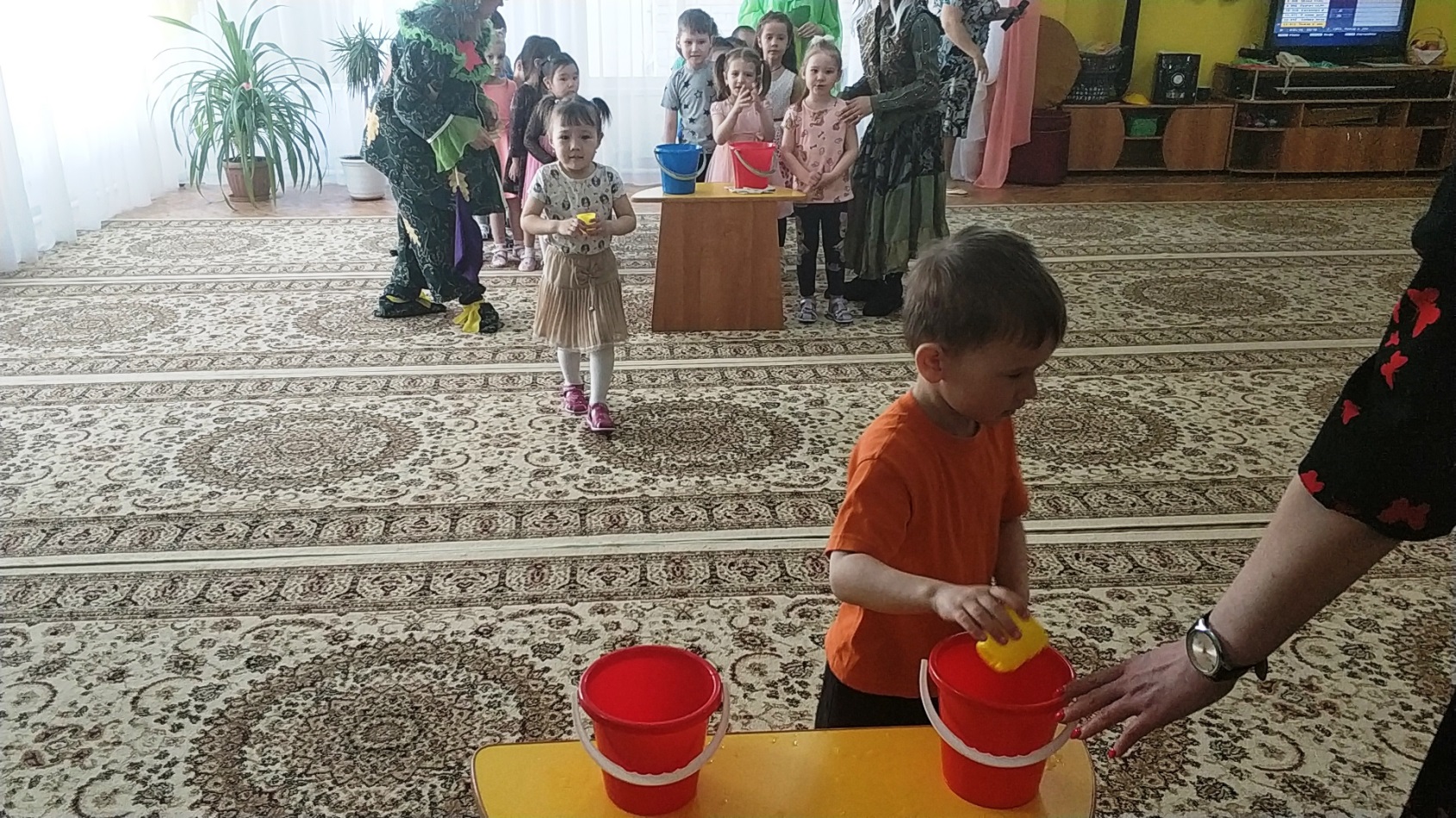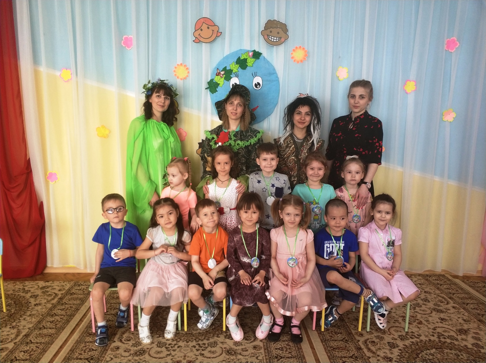 Аға және мектепалды топтарда өткен музыкалық-спорттық ойын-сауықтарда педагогтар балалармен біздің планетамыздың қорғауға мұқтаж екендігі туралы әңгімелесті. Бәрімізге не керек, онда бақтар гүлдейді, аспанда күн жарқырап, балалардың күлкісі естілді. Ойын-сауық көңілді және қызықты өтті. Орман ертегісінің шақыруын қабылдап, балалар ормандағы мінез-құлық ережелерін қайталап, "көктемгі дөңгелек би" және логоритмика әнімен балалар жасыл патшалыққа аттанды. Алдымен олар гүл шалғынына барып , онда Кикимора мен Лешего орман алыптарын кездестірді, олар қоқысты бүкіл клирингке шашыратты, құстарды қорқытты, ағаштарды сындырды. Лесная Фея қарсы алып, қонақтар қуана-қуана және сол уақытта грустью, бұл төтеп беру мүмкін бұзушылармен орман тәртібін, сұрады, балаларға көмектесу. Балалар "ән салатын құстар" ойынының көмегімен торғайлар сияқты айқайлады, қарғалар сияқты айқайлады, сиқыршылар сияқты сыбырлады және куку сияқты қуырды, сондықтан барлық құстар орманға қайта оралып, көңілді және абайсыз ән айтты. Барлығы билегісі келді. Содан кейін қоқысты алып тастаңыз және бұзақыларға табиғаттағы мінез-құлық ережелерін үйретіңіз. Балалар өлең оқып, өртті сөндірді, "жануарлар әлемінің білгірлері" ойынының көмегімен су қоймалары мен жер тұрғындарын әдеттегі туған жерлеріне қайтарды.