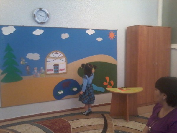 На УОД приняли участие подгруппа из 6 детей и присутствовало 4 родителя. Родителям было очень интересно наблюдать за своими детьми. Хочу отметить со своей стороны, что родители сопереживали и помогали своим детям отвечать, чувствовалась заинтересованность в изучении казахского языка их детьми.