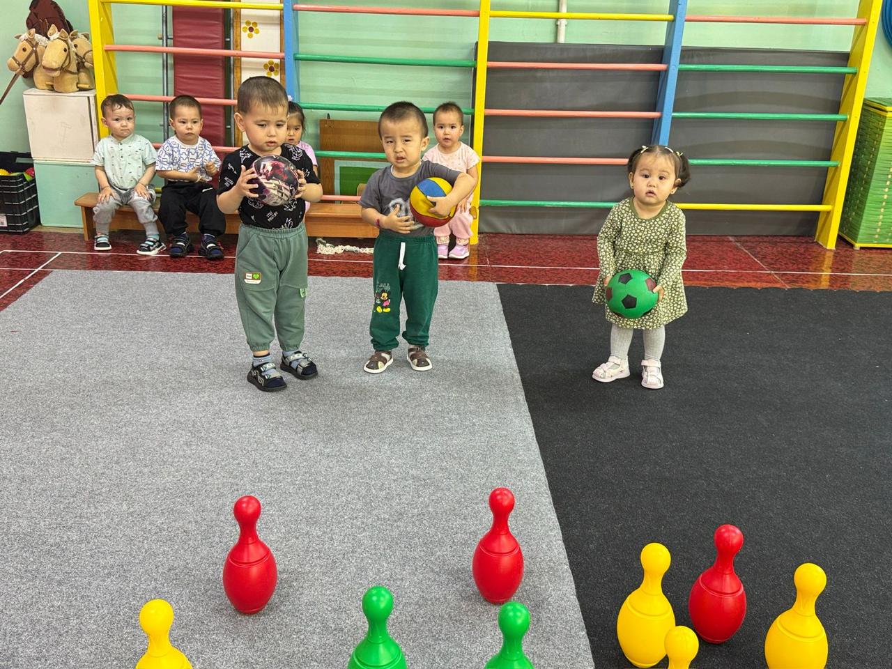 Дене тәрбиесі Мақсаты:Дене тәрбиесіне сай жаттығуларды кезекпен кезек өткізу. Міндеттері:Балаларды саппен жүруді үйрету. Ойындарға қызығушылықтарын арттыру.