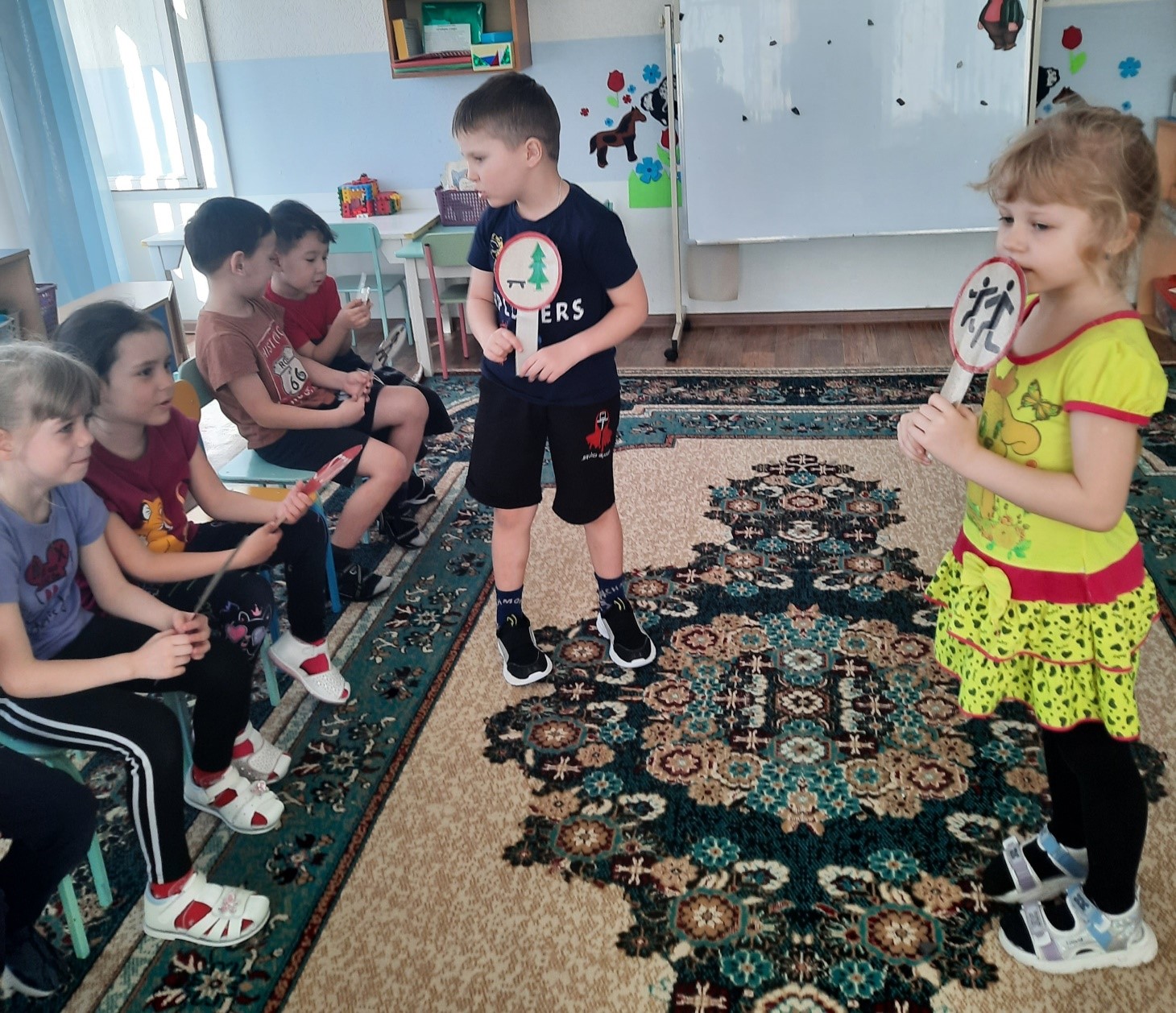 Провели Дидактические игры и упражнения. Закрепили умение дифференцировать запрещающие, предупреждающие, указательные знаки и знаки сервиса.