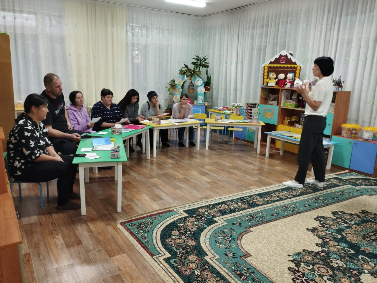 На собрании познакомили родителей с особенностями речевого развития детей дошкольного возраста. Проанализировать речевое развитие детей группы. Познакомили родителей с речевыми играми, в которые полезно играть с ребёнком дома.
