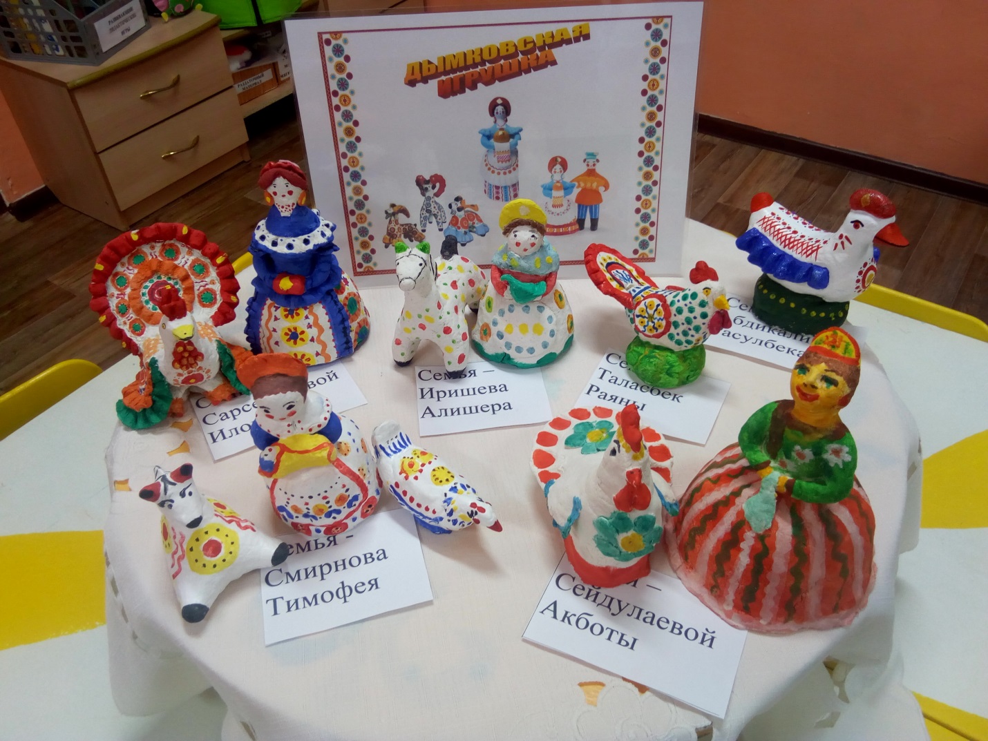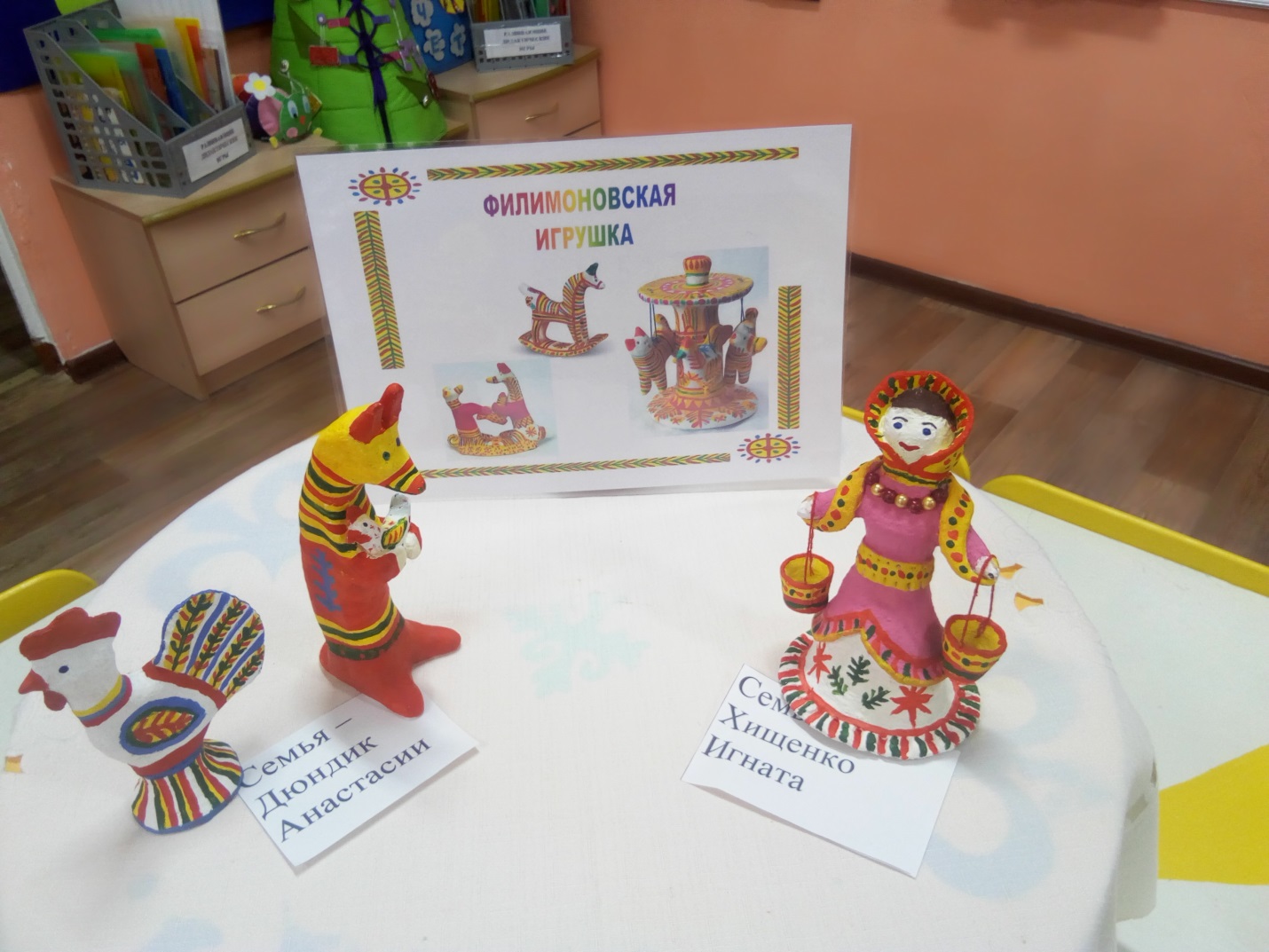 Для того, чтобы детей лучше познакомить с народным декоративно-прикладным искусством, с изделиями народных промыслов, расширить представление о народных игрушках ,мы решили привлечь родителей. Такая совместная работа детей и родителей способствует формированию положительного эмоционального опыта от получения общего творческого продукта.