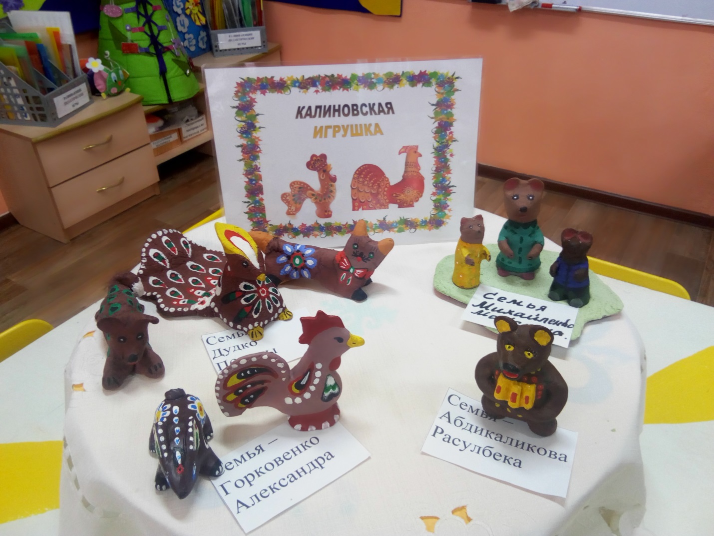 Было разработано положение о конкурсе. И закипела работа. Каково было наше удивление, когда наступил заключительный этап - создание выставки. Родители проявили творческий интерес к работе, фантазию, смекалку, находчивость. Были созданы и дымковские. калиновские, филимоновские и каргопольские игрушки и свои придуманные герои, но расписанные элементами данной росписи.