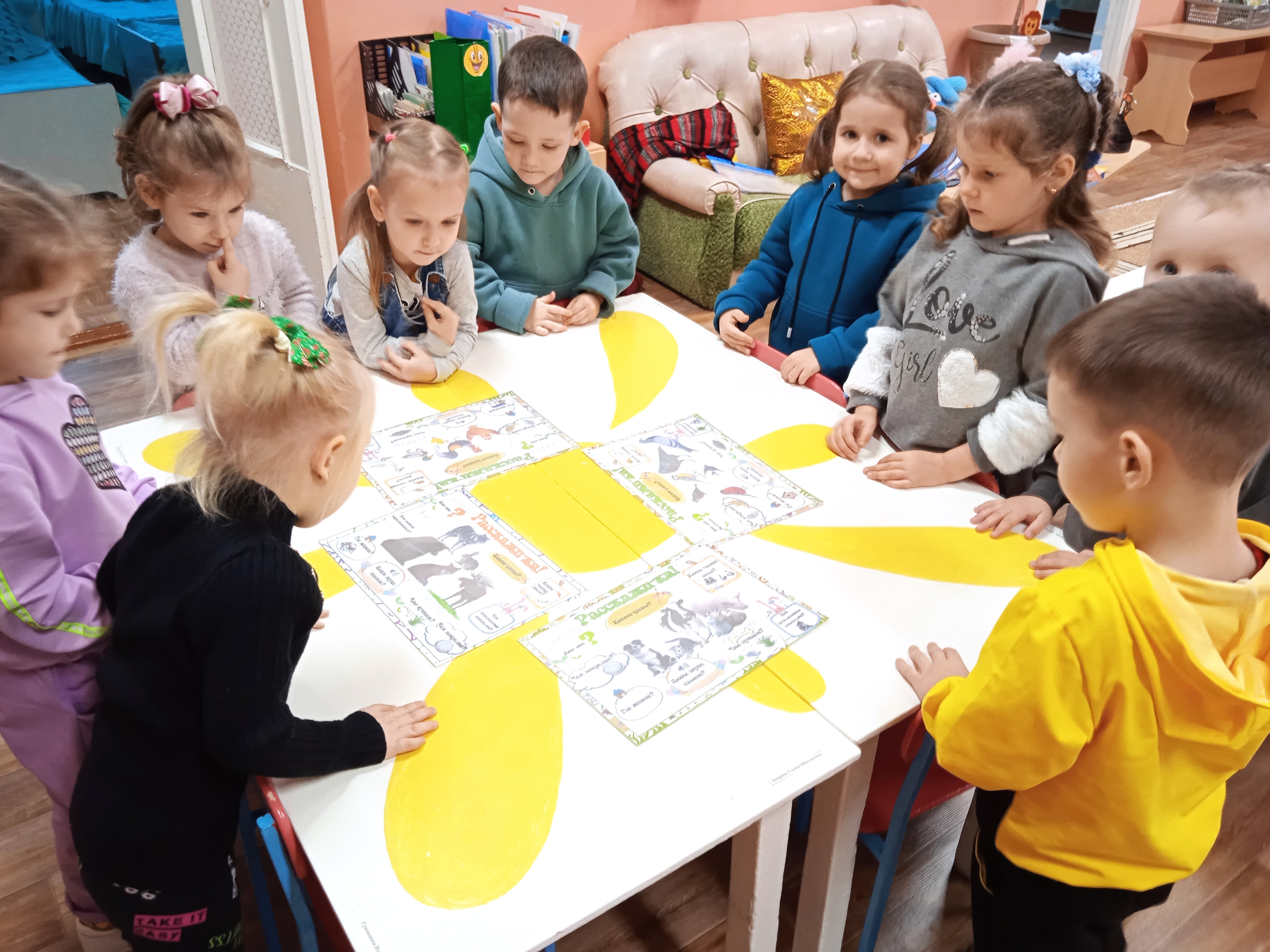 Для того чтобы сформировать у детей потребность в самостоятельном изучении природы была организована деятельность на территории детского сада. Были проведены серии целевых прогулок по экологической тропе, разработаны дидактические игры: «Четвертый лишний», «Вершки и корешки», «Подбери правильно» (поворачивая кубики, дети выбирают дикое животное, затем подбирают его след, жилище и чем животное питается).