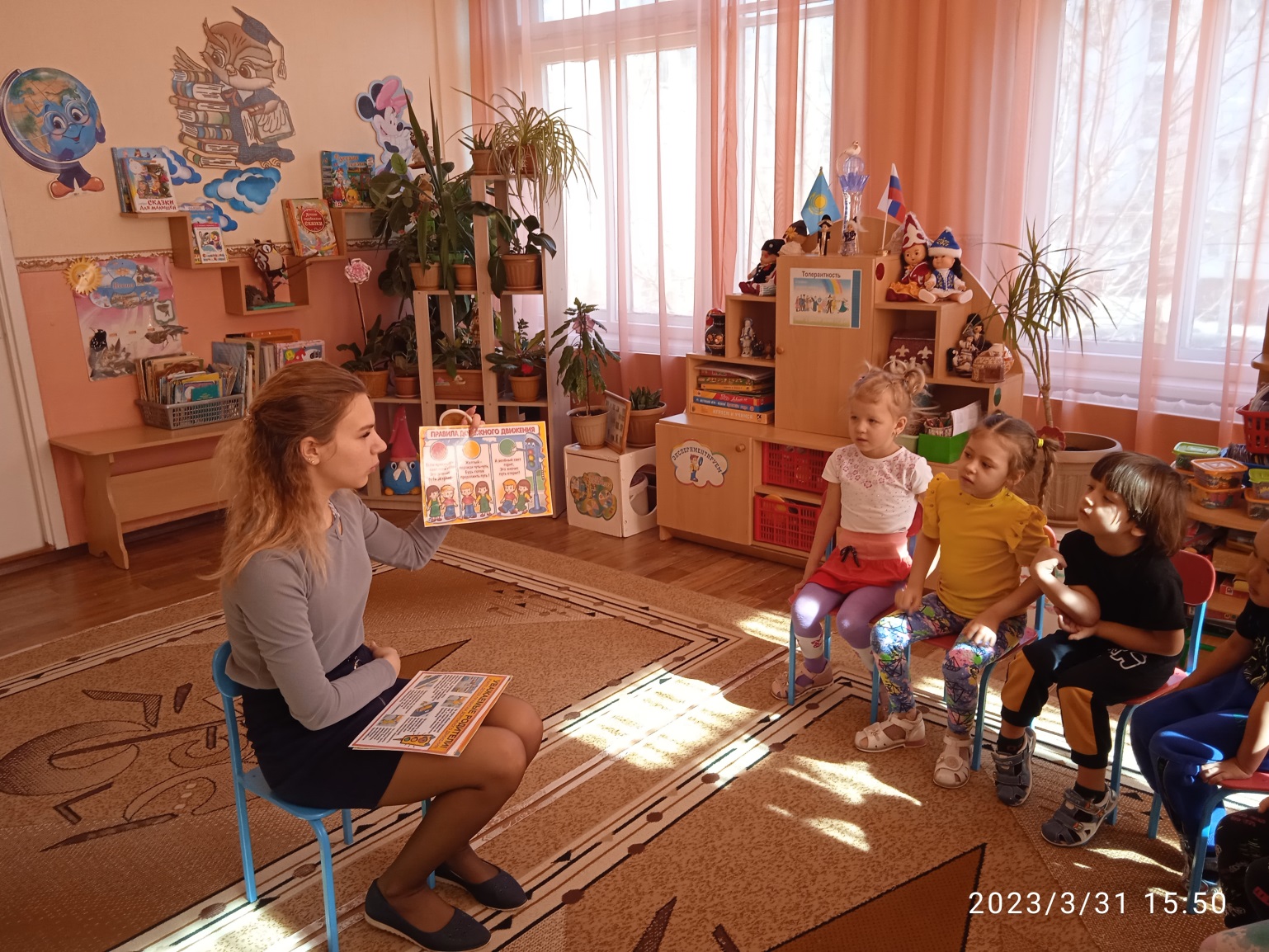 В режимных моментах были проведены следующие мероприятия по знаниям правил дорожного движения : чтения художественной литературы «Светофор» С. Михалкова, «Айболит» К. Чуковского, занятия «Транспорт», «Сколько глаз у светофора», подвижные игры - ситуации "Кто шофер?"