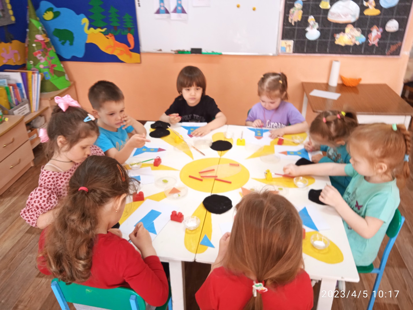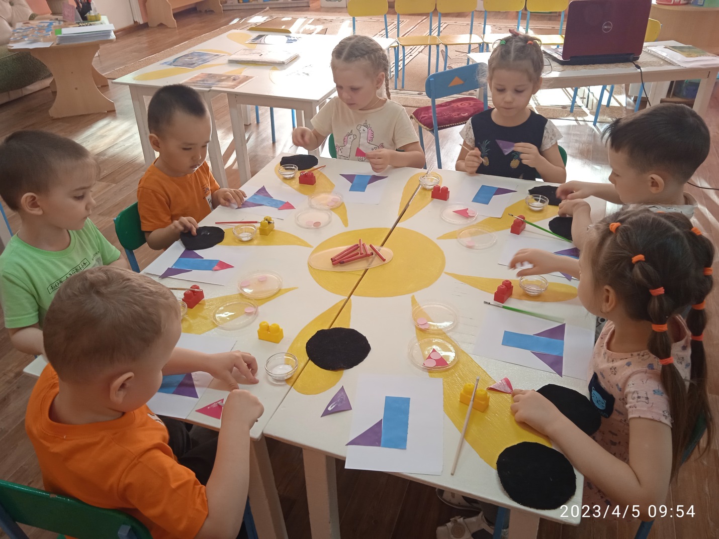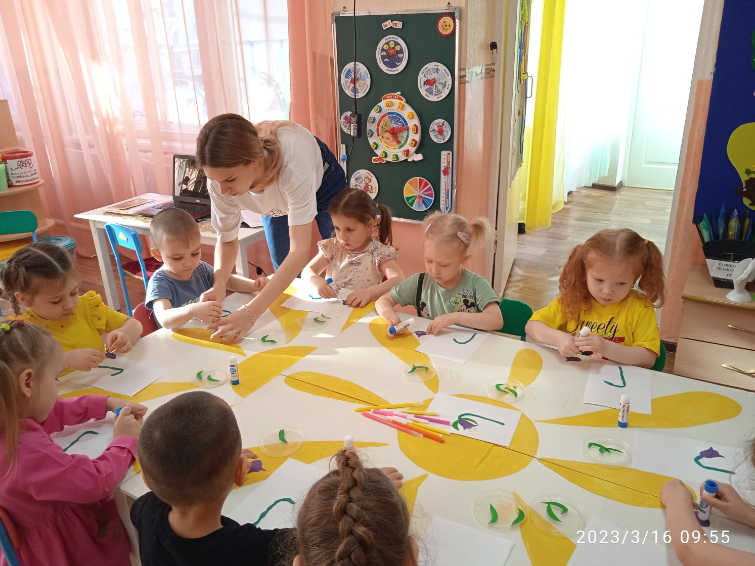 Учили стихотворение Е. Серовой «Одуванчик», ребята слушали рассказы Н. Усовой «Ландыш», «Фиалка», П. Соловьёвой «Подснежник», провели хороводную игру «Мы на луг ходили», (цель - развивать чувство ритма, сочетать движения со словами), отгадывали загадки о цветах, играли в подвижную игру «Цветы и ветер». Полученные знания закрепляли с детьми в дидактических играх: «Когда это бывает?», «Угадай цветок», «Нарисуй цветок, о котором я расскажу», «Лото (цветы)», «Собери букет», «Собери картинку (цветы)». В свободной деятельности дети выкладывали цветы из мозаики.