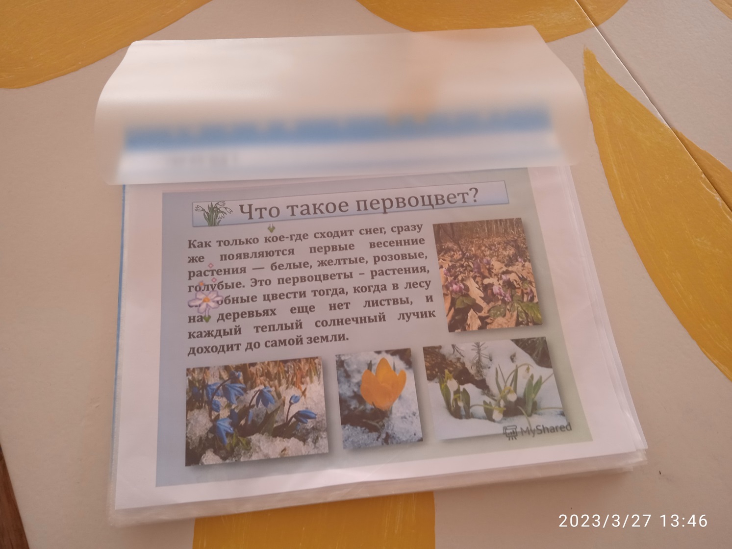В нашем детском саду проходил проект «Первоцветы». Наша группа «Солнышко» принимала в нём участие.