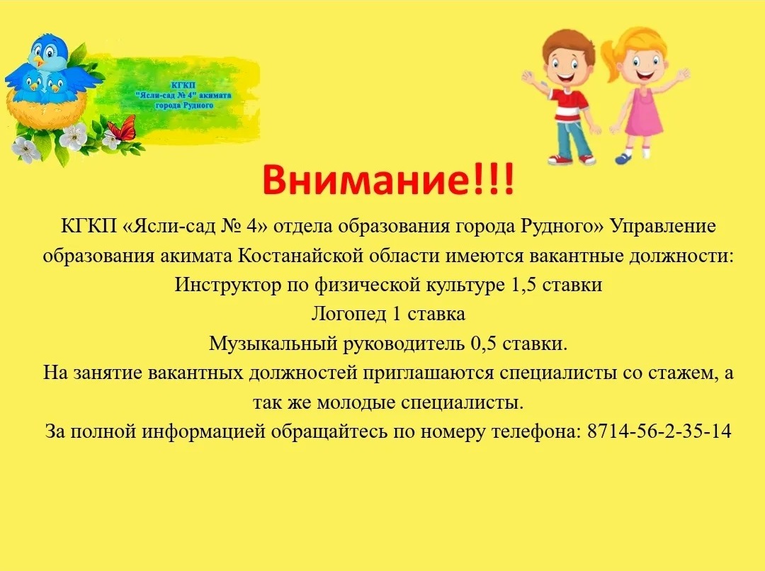 Ответственный в КГКП «Ясли-сад №4» отдела образования города Рудного» Управления образования акимата Костанайской области за оказание государственной услуги «Прием документов и зачисление детей в дошкольные организации».