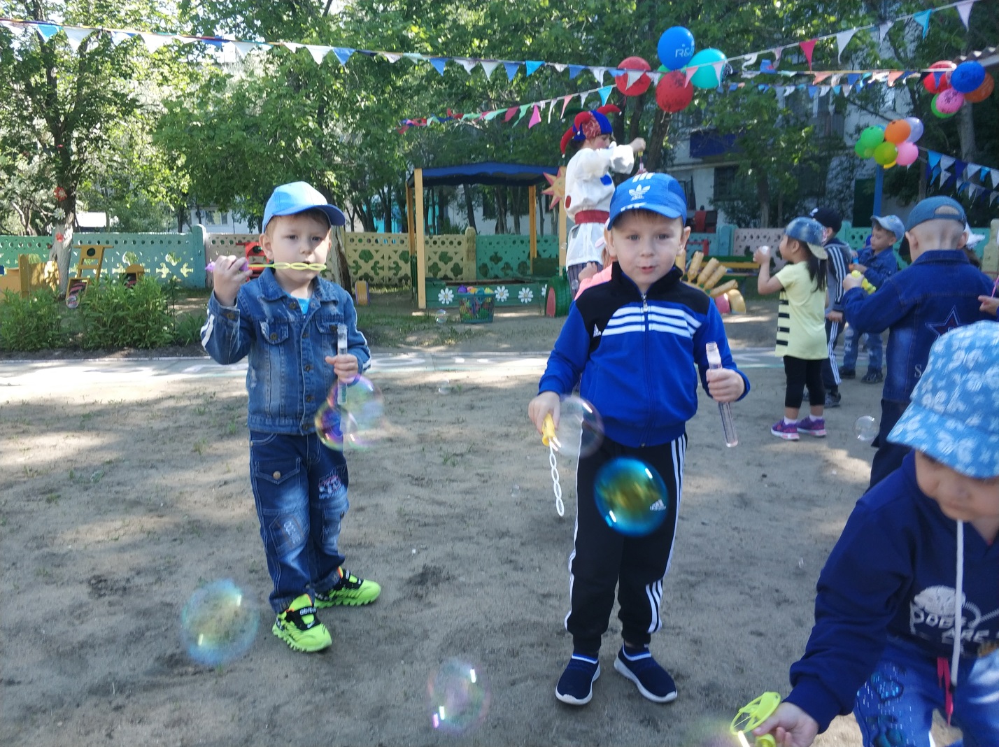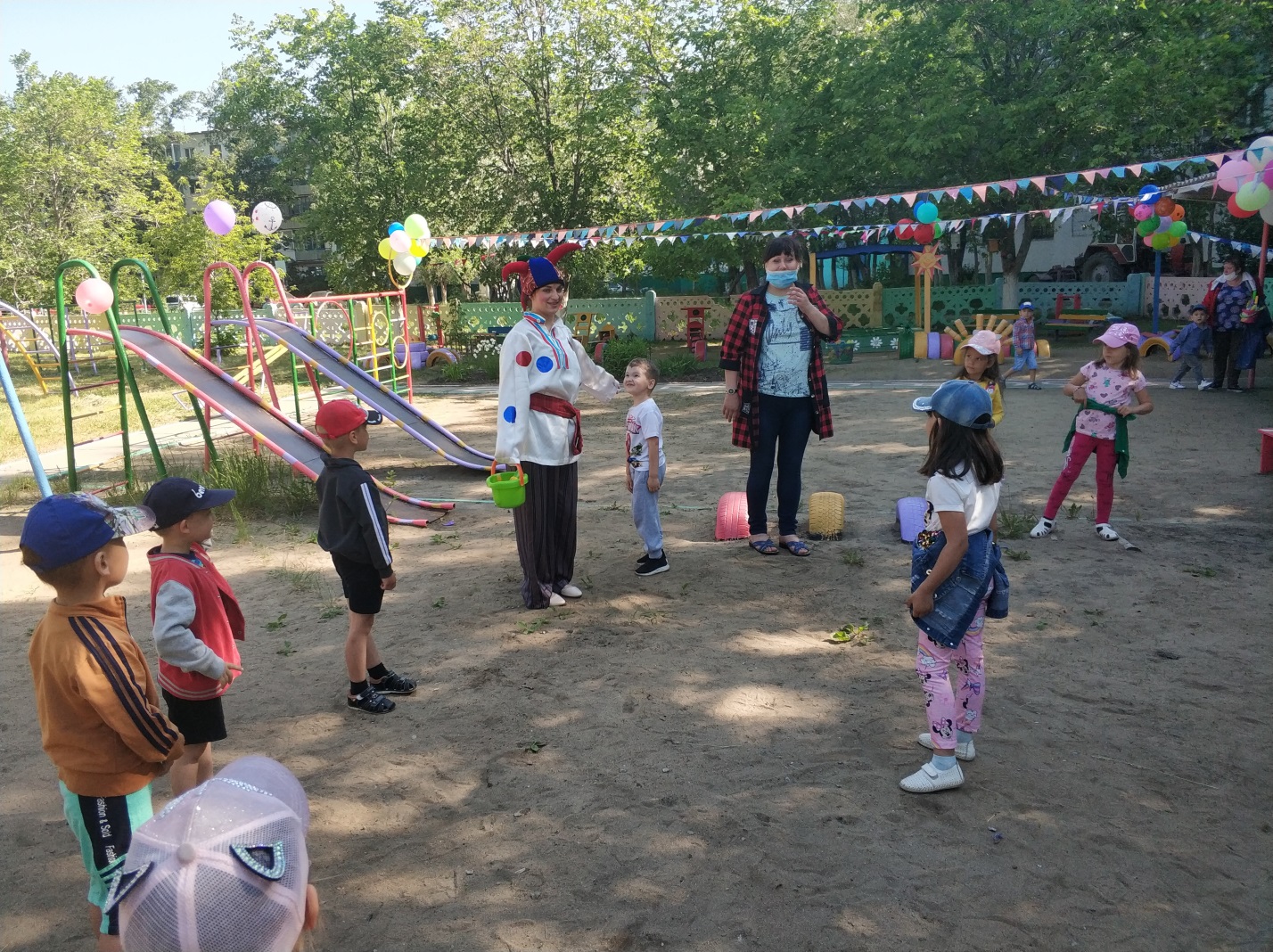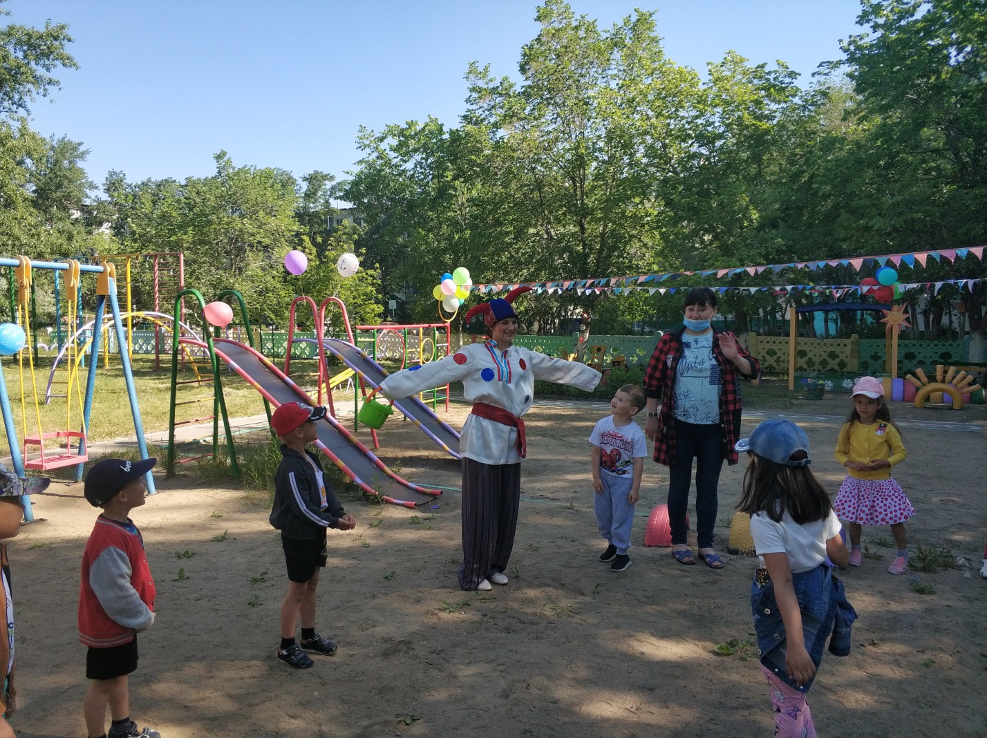 В этот день наш садик отметил праздник посвящённый «Дню защиты детей», дети на улице играли, танцевали, играла веселая музыка, приходил в гости «Петрушка» проводил различные подвижные игры.