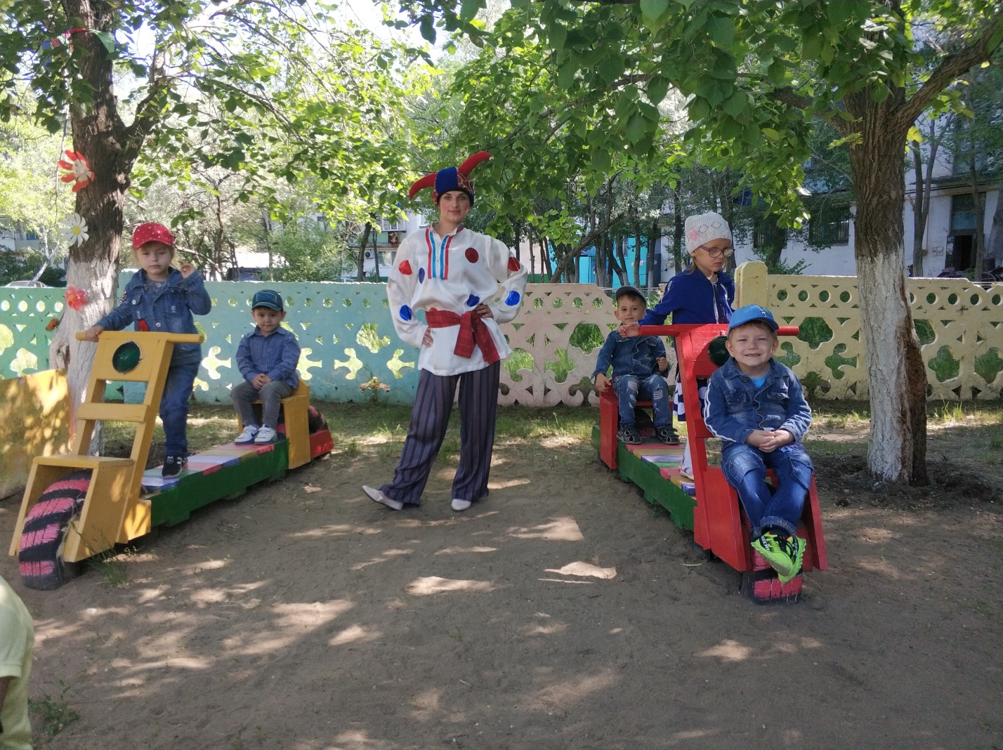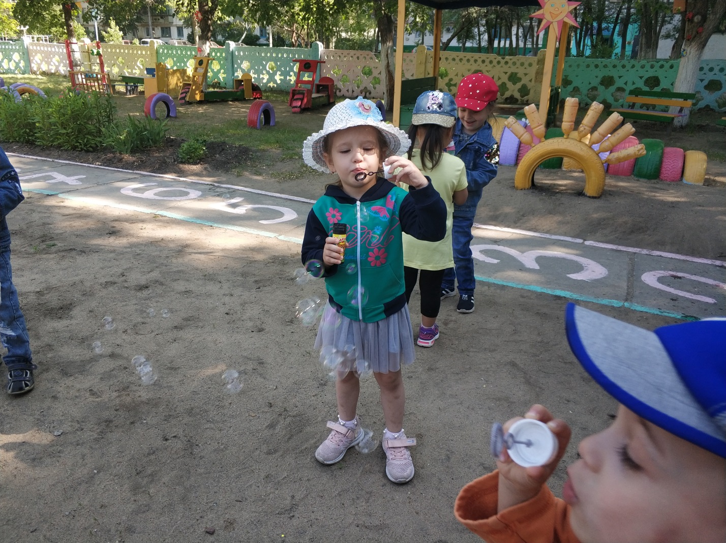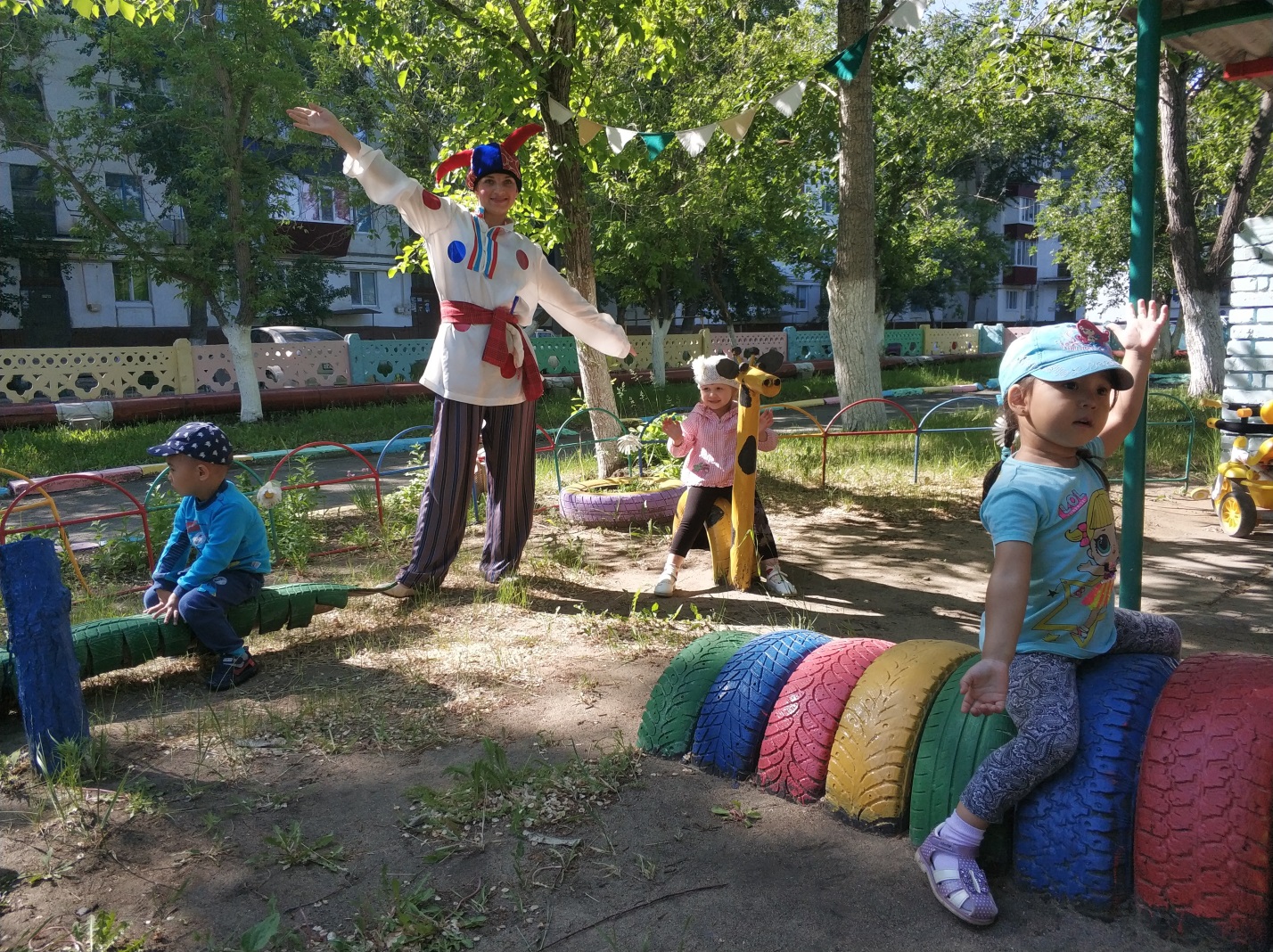 В этот день наш садик отметил праздник посвящённый «Дню защиты детей», дети на улице играли, танцевали, играла веселая музыка, приходил в гости «Петрушка» проводил различные подвижные игры.