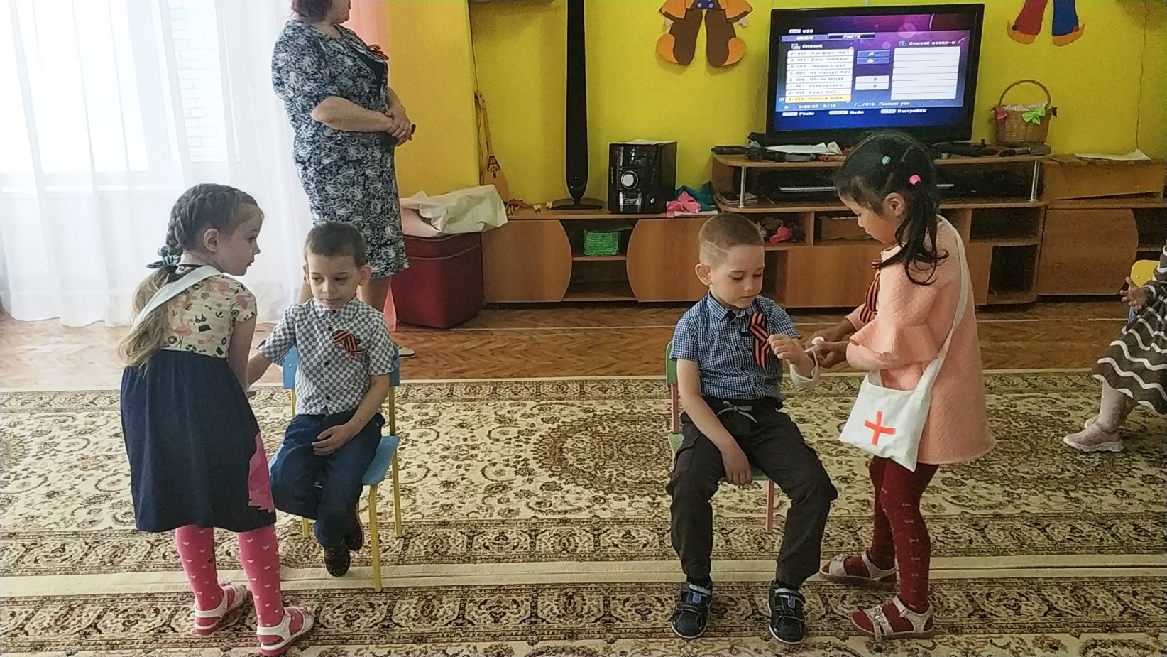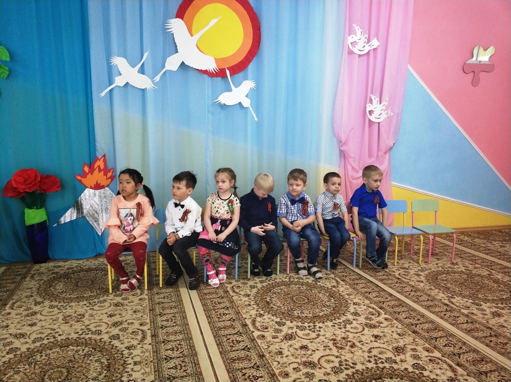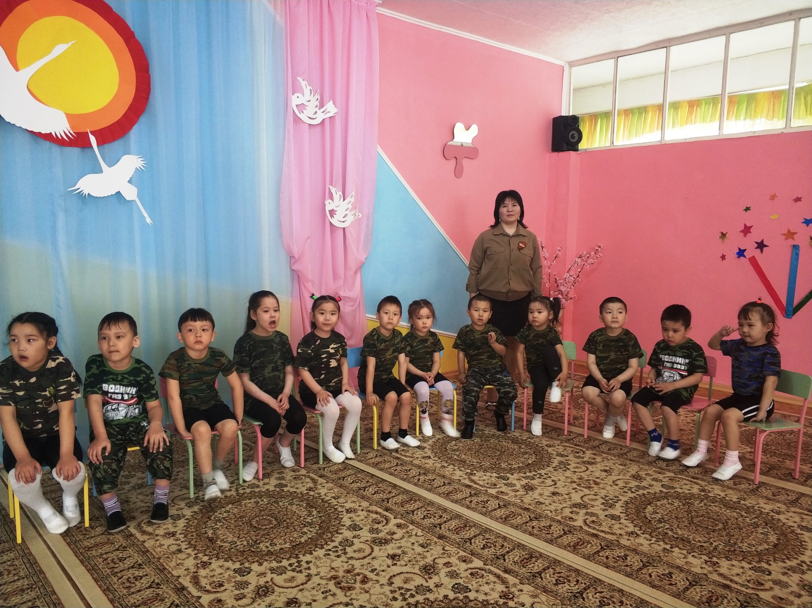 В КГКП «Ясли-сад №4» акимата г. Рудного проведены тематические мероприятия посвященные Дню Победы - 9 мая: познавательные беседы о войне, о городах-героях, о подвигах героев войны с рассматриванием иллюстраций, чтением художественной литературы, просмотром презентаций.