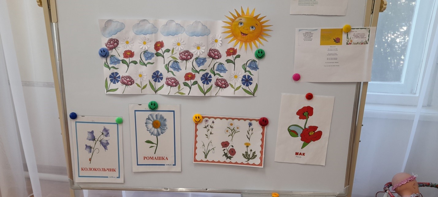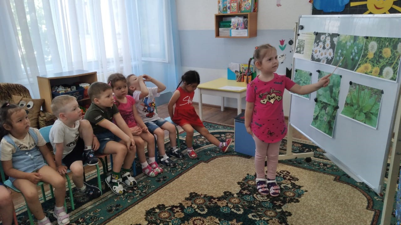 Во всех возрастных группах прошли познавательные беседы на тему полевые (луговые) цветы. Педагоги рассказали детям: как на лугах получается такое большое количество цветов. Ведь там нет садовника, который сажал бы семена. Познакомили с новыми дидактическими играми: «Цветочная поляна», «Божьи коровки на ромашках».