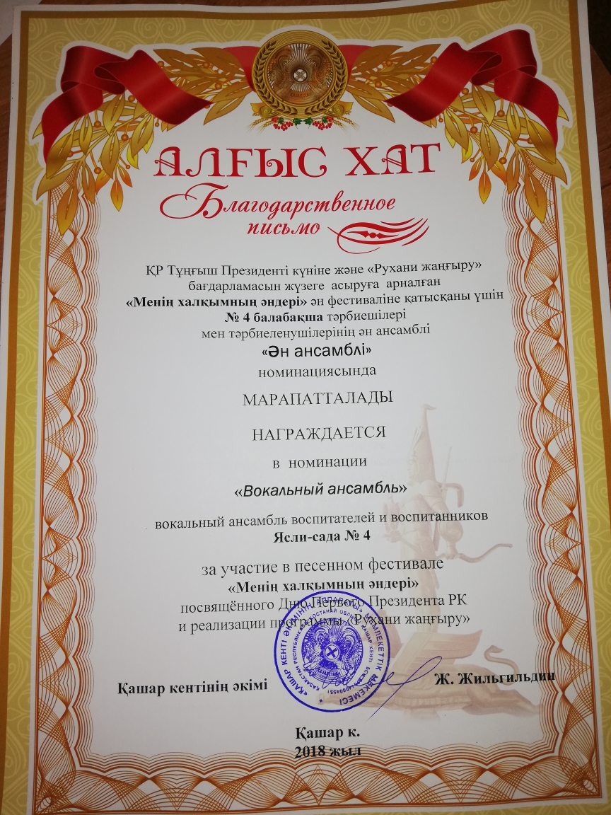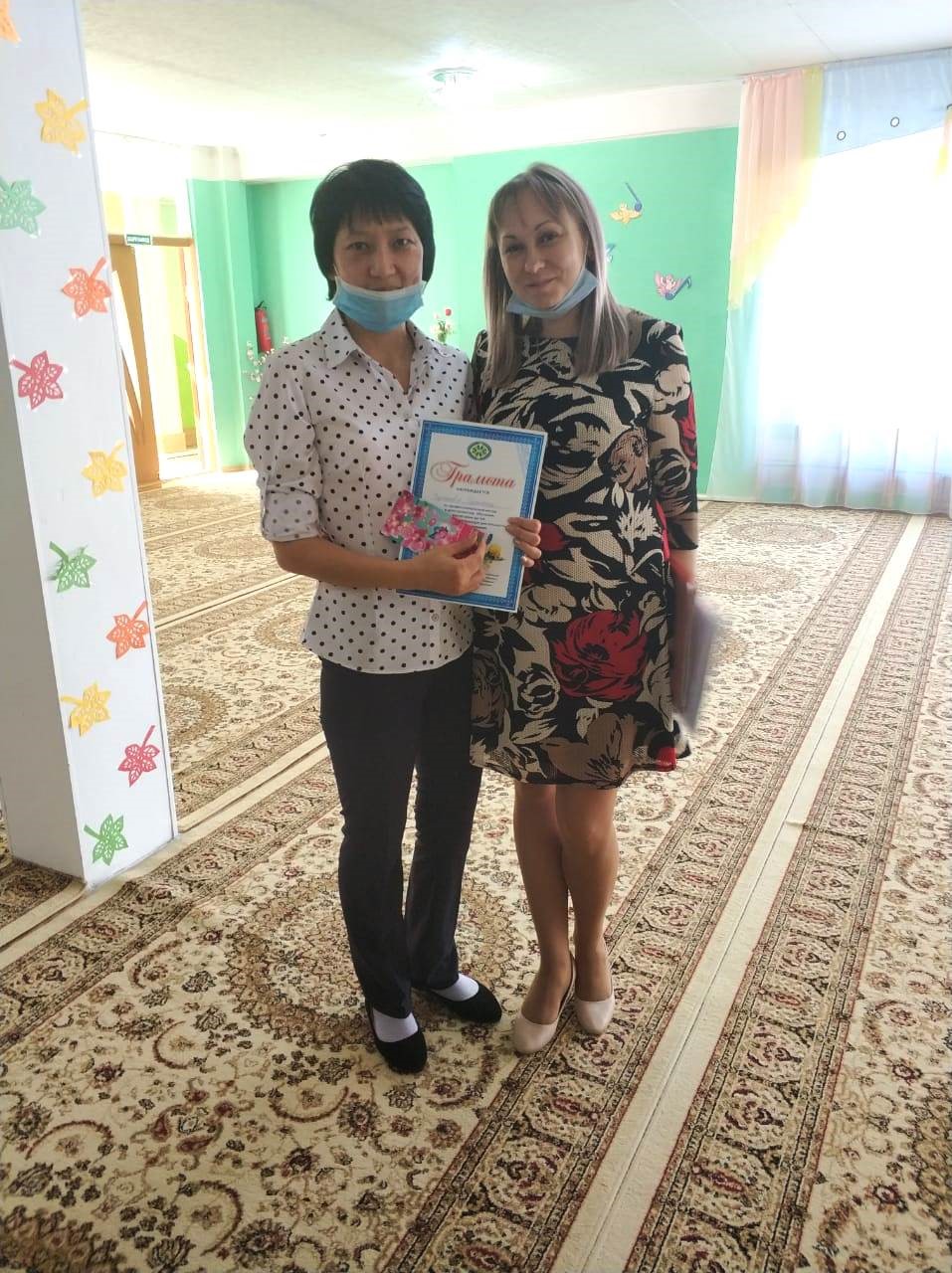 В честь праздника «Дня учителя» получили грамоту, два воспитателя: Тутаева Гульмира Жусуповна, Шрейдер Анастасия Викторовна, поздравляем и желаем дальнейших успехов!