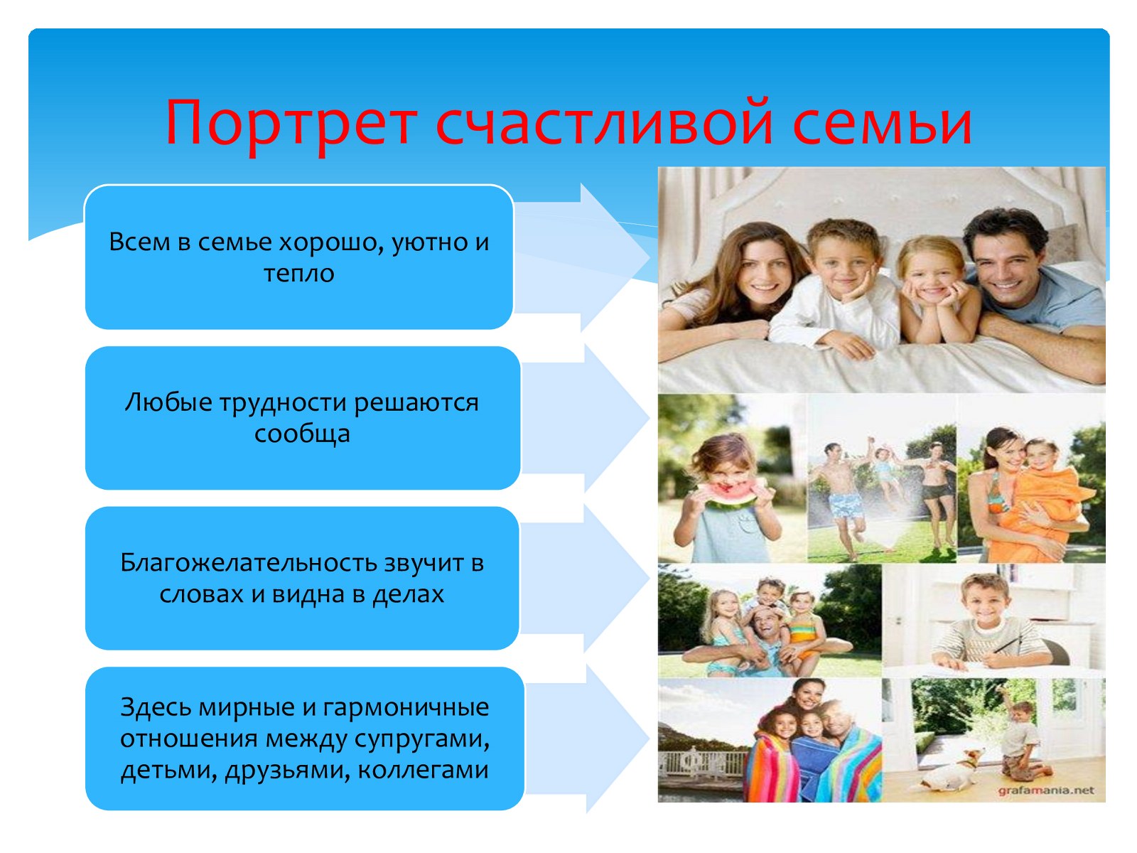 Счастье семьи чаще всего проявляется в отношениях в этой семье. Всем хорошо, уютно, тепло и интересно, любые трудности решаются сообща, благожелательность звучит в словах и видна в делах. О такой семье смело можно говорить — они счастливы. Здесь мирные и гармоничные отношения между супругами, детьми, родственниками, друзьями и коллегами. Ведь это 5 главных областей наших эмоциональных связей, которые являются очень значимыми для человека и больше всего влияют на наше самочувствие.