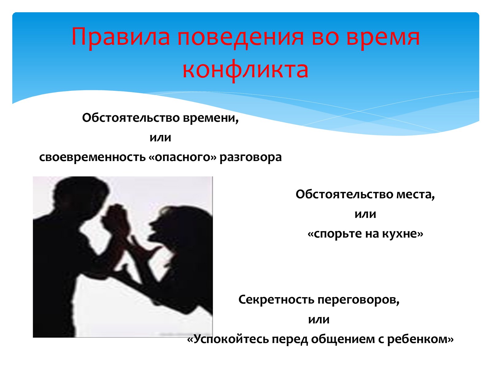 - Обстоятельство времени, или своевременность «опасного» разговора. Если уж накипело и хочется высказаться по многим вопросам, подождите, пока малыш уснет. Эта передышка позволит вам немного остыть и более трезво взглянуть на ситуацию. Обсуждайте только то, что действительно требует немедленного решения. В какую школу пойдет ребенок, можно будет решить немного позже. Не перегружайте друг друга проблемами, которые не требуют срочного вмешательства.