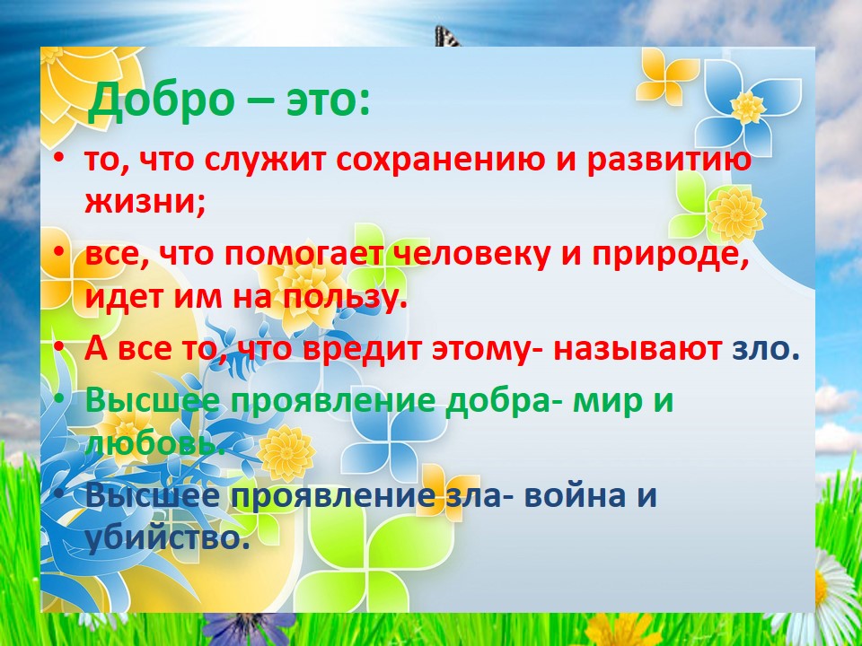 Добро - это утверждение жизни раскрытие человеческих сил.