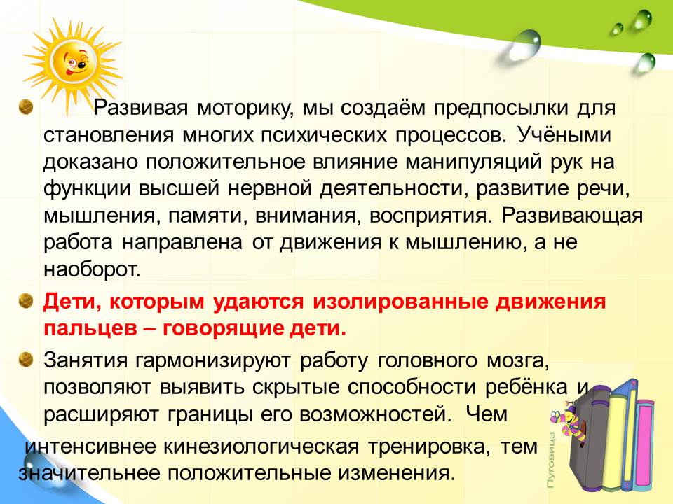 - Проведение работы над уточнением зрительных, слуховых, осязательных, двигательных ощущений.