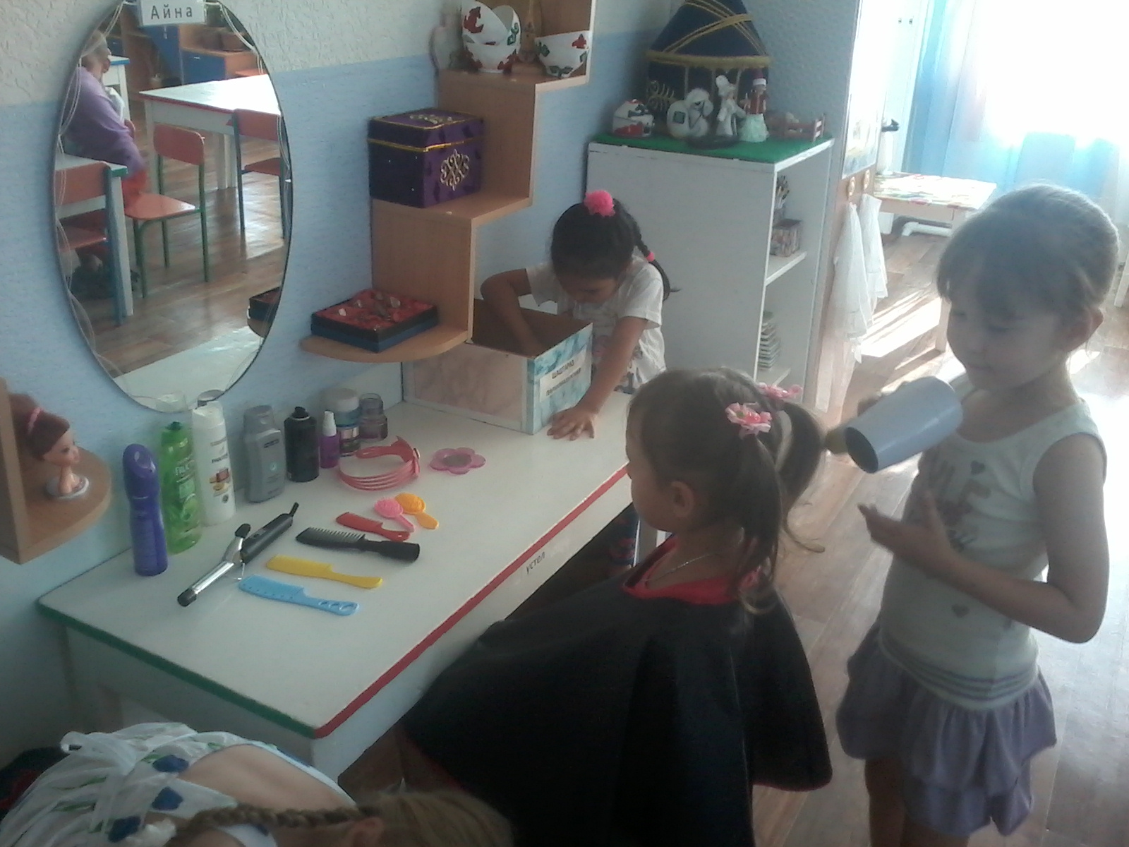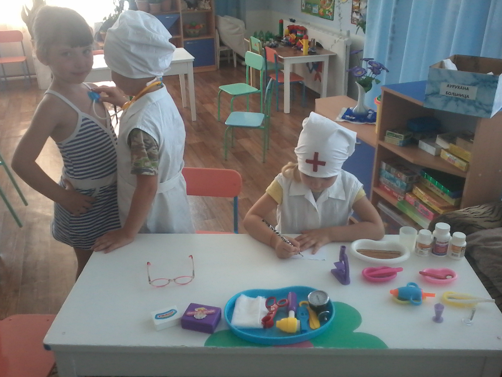 В старших группах через проектную деятельность и сюжетно-ролевую игру осуществляется ознакомление дошкольников с разными видами профессий. Дети с помощью родителей подбирают информацию о той или иной профессии. педагоги оформляют игровые зоны, систематизируют дидактический материал, организуют и руководят сюжетно-ролевой игрой.