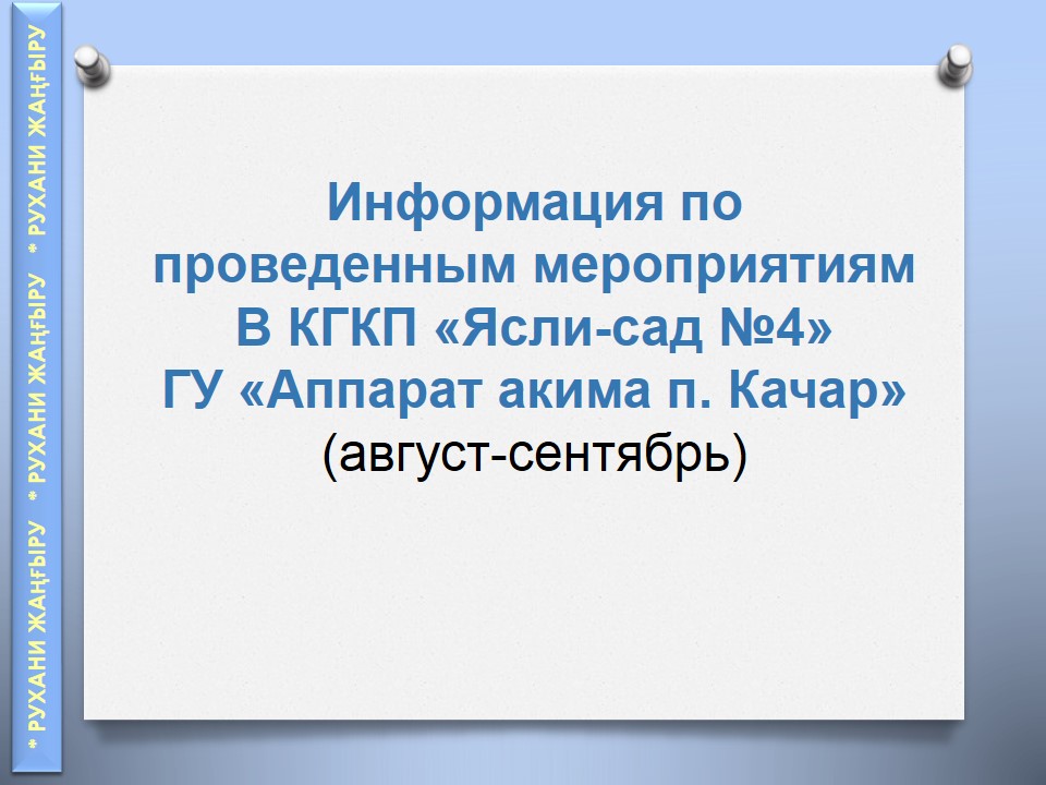 Организация образования: КГКП «Ясли-сад №4» ГУ «Аппарат акима п. Качар»
