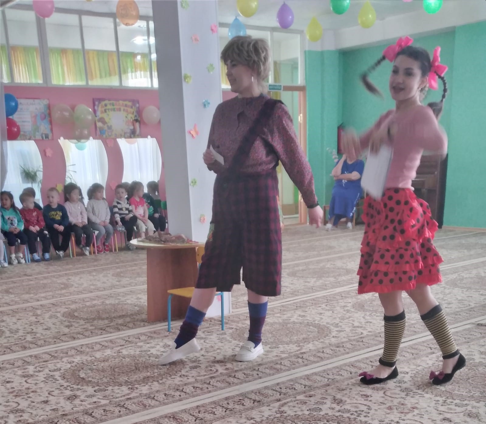 А для детей праздник начался со встречи с веселым персонажем клоуном Клепой, который поздравил всех ребят с праздником и пригласил на развлечение.