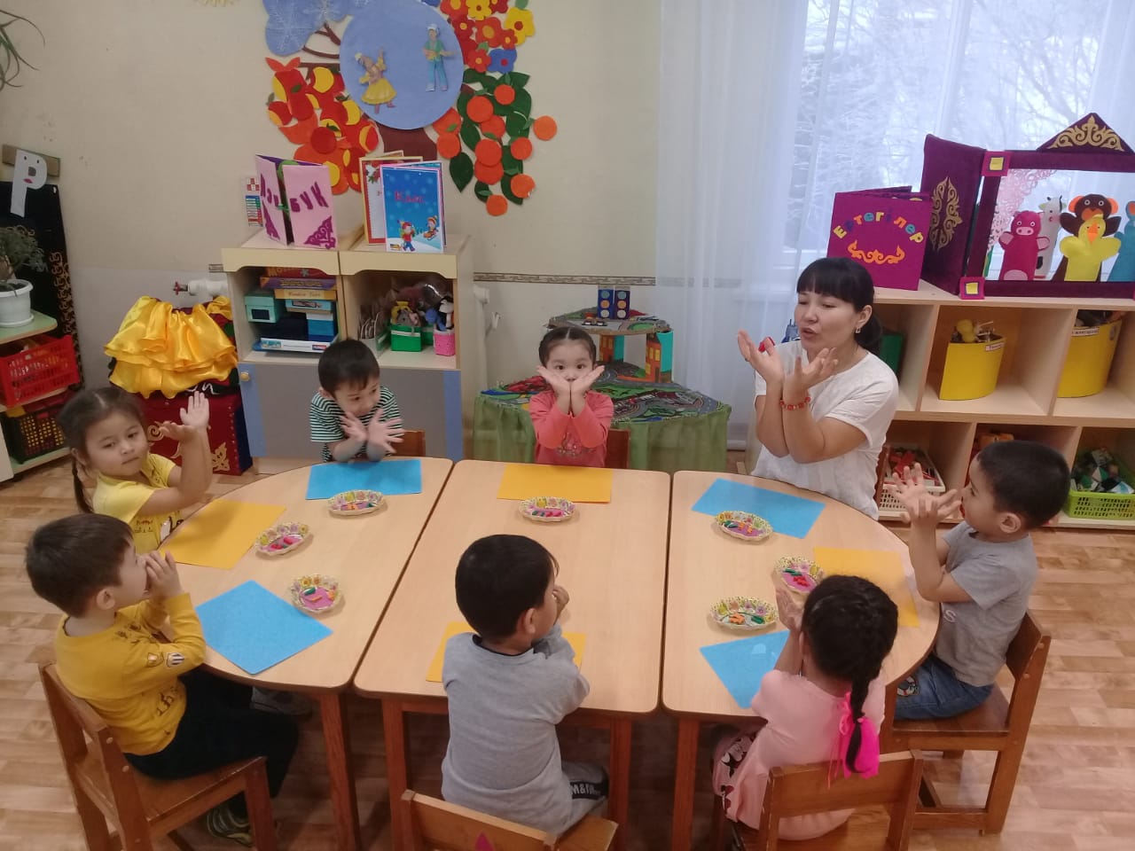 Задачи: Учить детей правильному произношению звука–И- ( в звукосочетаниях, в словах), регулировать высоту голоса. Вызвать радость от повторения знакомого стихотворения и желание читать его вместе с воспитателем громко, выразительно; воспитывать интерес к представителям животного мира Казахстана