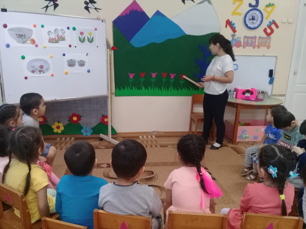 Задачи: учить слушать и вникать в смысл услышанного, уточнить представления детей о разнообразии природы Казахстана, отличать стихотворный текст от прозы.